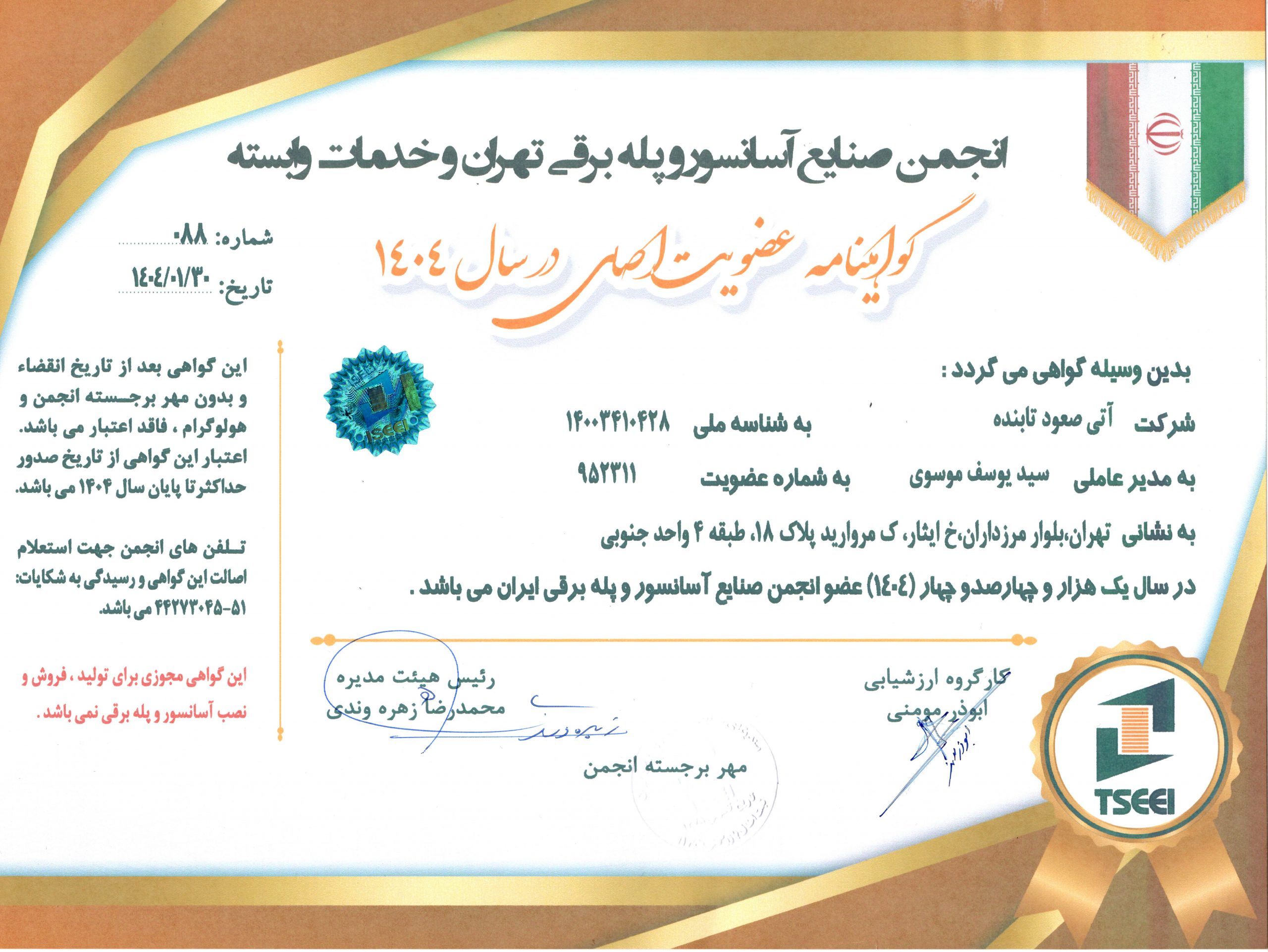 شرکت آتی صعود تابنده با شماره ثبت 436878 در تاریخ 1392/02/18 به ثبت رسید و در تاریخ 1395/09/16 رسماً فعالیت خود را آغاز کرد . اعضای هیئت مدیره با سابقه ای 20 ساله در زمینه نصب و راه اندازی انواع آسانسور و پله برقی از نقاط قوت شرکت محسوب شده و همچنین این شرکت با نگرشی نوین و کارآمد، نسبت به استخدام نیروهای دانشگاهی و همچنین بکارگیری نیروهای مجرب در زمینه امور اجرایی آسانسور، توانسته تلفیقی از علم روز و تجربه را در کارنامه روشن خود به ثبت رساند .